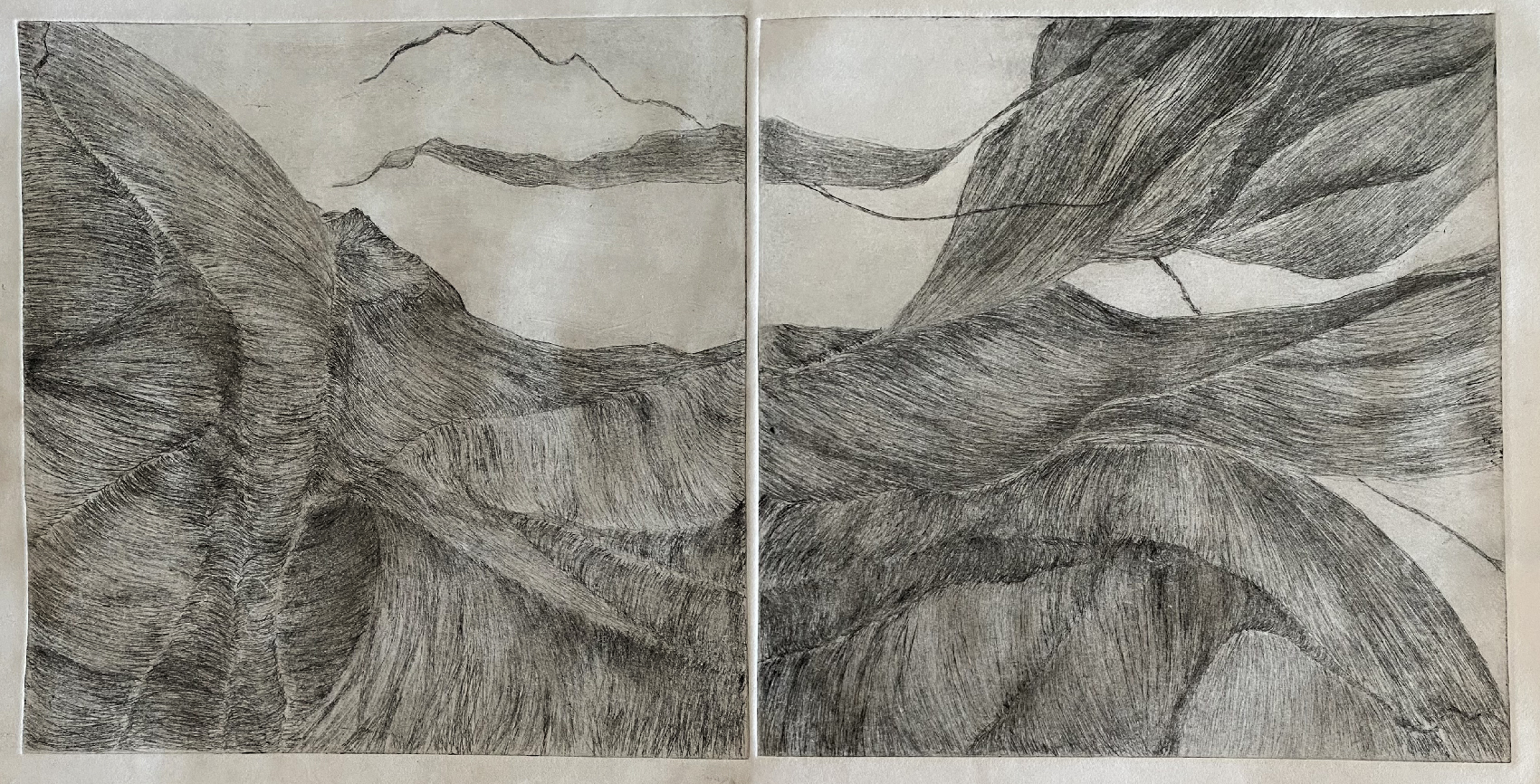 aquatinte, burin Série « réchauffement climatique » Tsunami, fonte des glaciers, tremblements de terre…